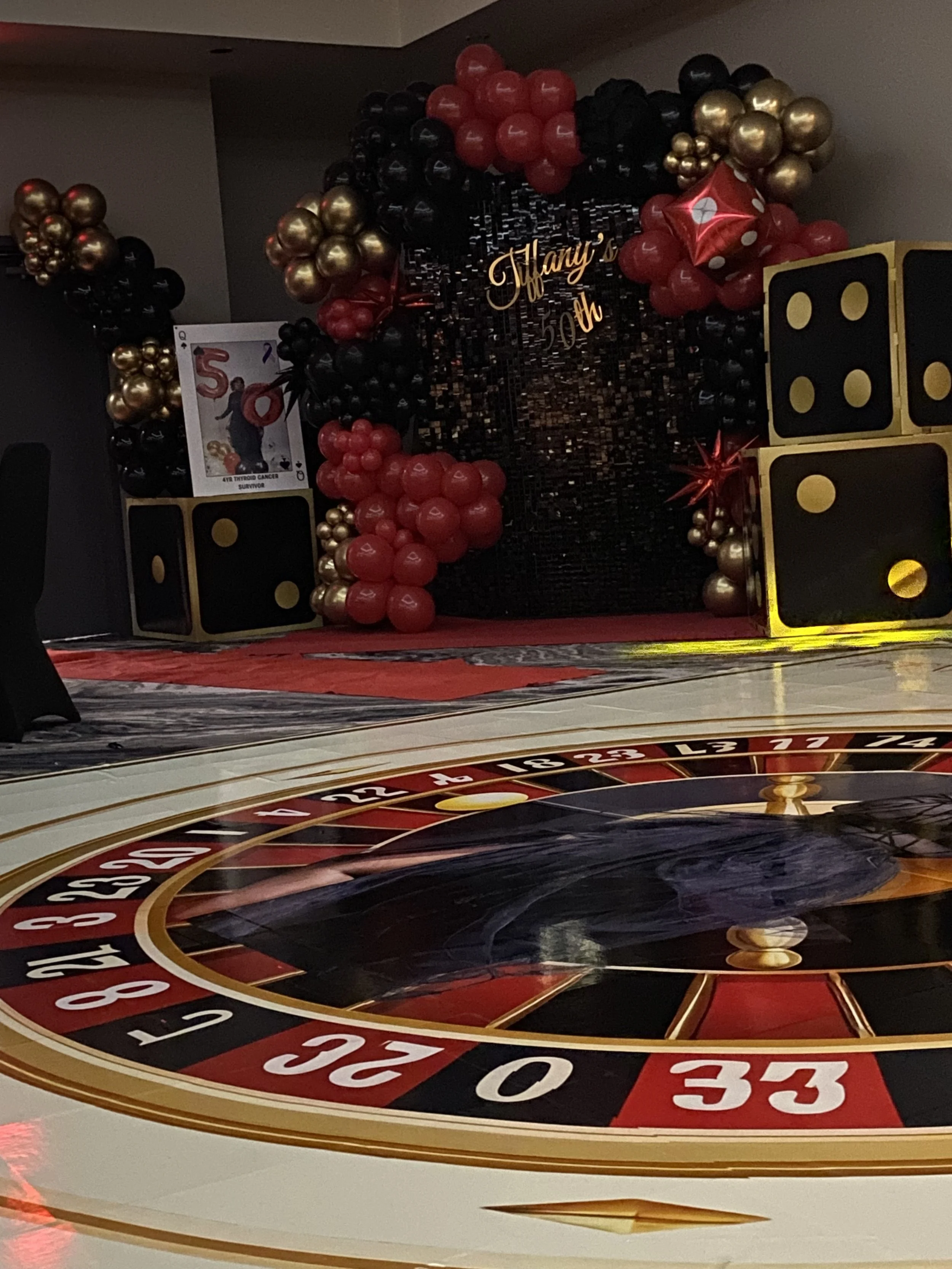 focal point design (e.g., premium balloon install, custom backdrop, signage)